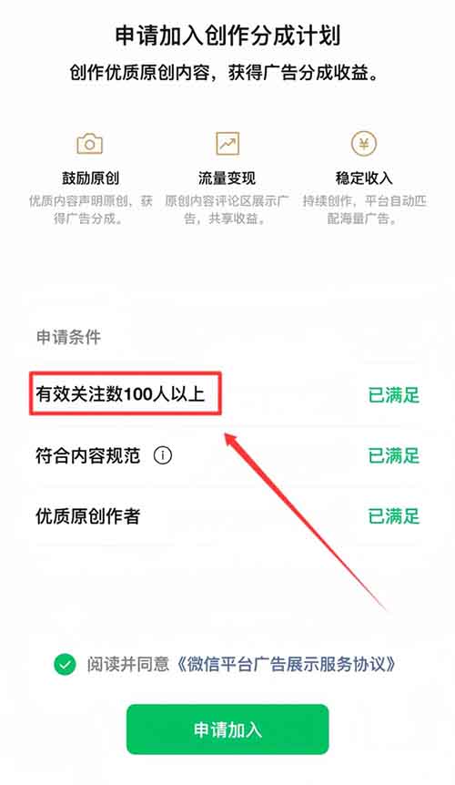 分成计划是视频号变现最简单的一种方式,只要我们发布的视频有播放量,我们就会有收益,不过有个小门槛,需要有效粉丝数≥100才能开通。