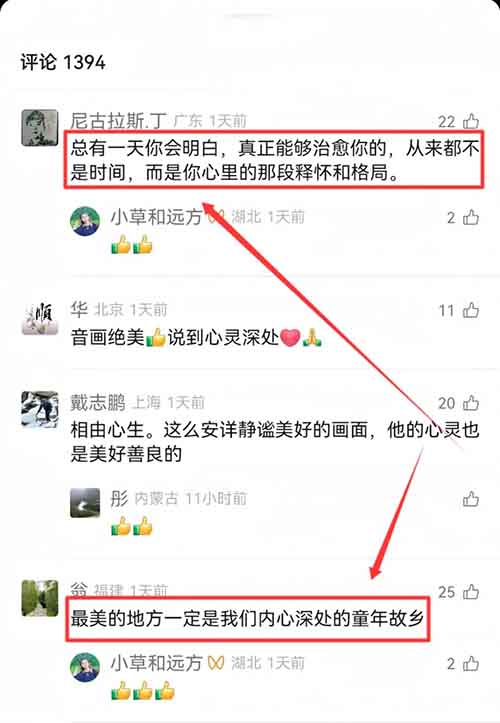 为什么流量这么好?原因很简单,因为博主拿捏了中老年人的心理,知道他们喜欢看什么,像这种治愈系风景视频,很容易引起中老年人的情感共鸣。