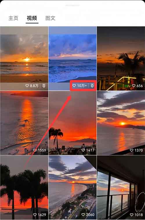 比如下面这个账号,每天发2条治愈系风景视频,每条视频的点赞都是1000+,而且隔三差五就出一条10万+的爆款。