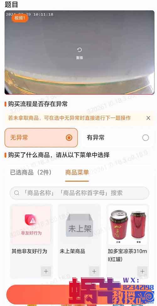 每个视频长度大约十几秒,你只需检查是否有异常操作,如果没有异常,就选择“无异常”,然后确认购买的饮料种类和数量。