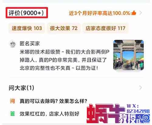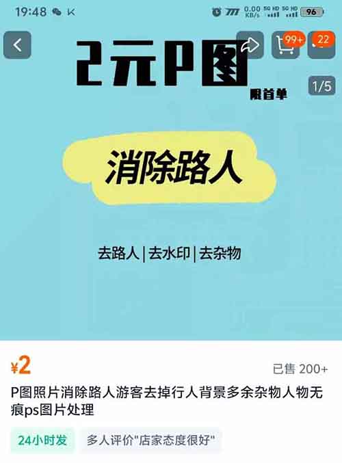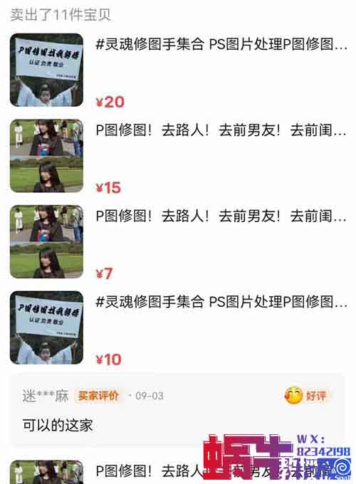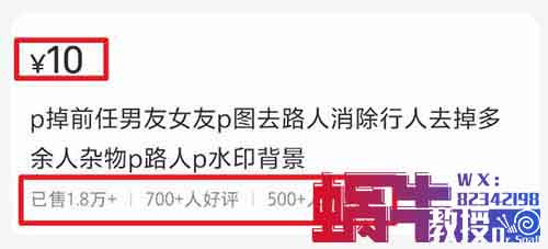 就是帮别人把照片里面的路人P掉,一张收费10块钱,销量做到了1.8万+
