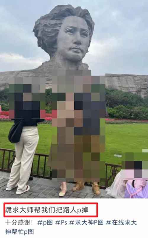有的人不会P,就会把照片发到小红书上,找大神帮忙去掉。