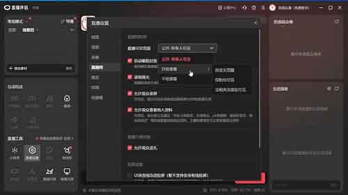 前面测试直播间搭建的时候,想看看效果的,直播间这里可以指定只给某个人看,后面正式直播了可以选择公开给所有人看。