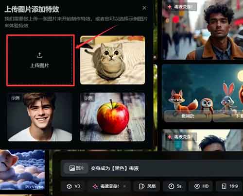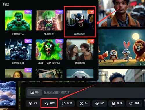 打开AI软件,点击下方的“特效”,然后选择“毒液变身”,如下图。