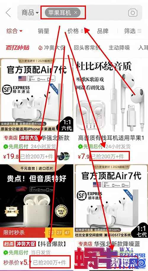 我们在通过拼夕夕平台来看一下耳机的价格,从几块钱到20多不等,这就是成本。