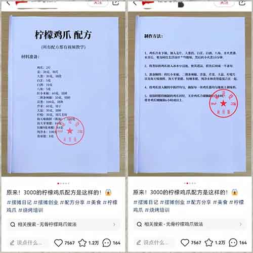 变现方式就是卖小吃配方,可以直接在小红书卖,也可以引流到你微信上卖。