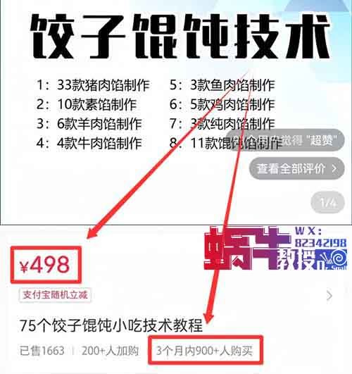 如上图,定价498元的小吃配方,3个月卖了900多单,我们简单算一笔账:498元×900单=448200元。