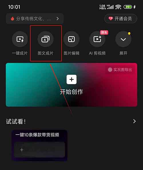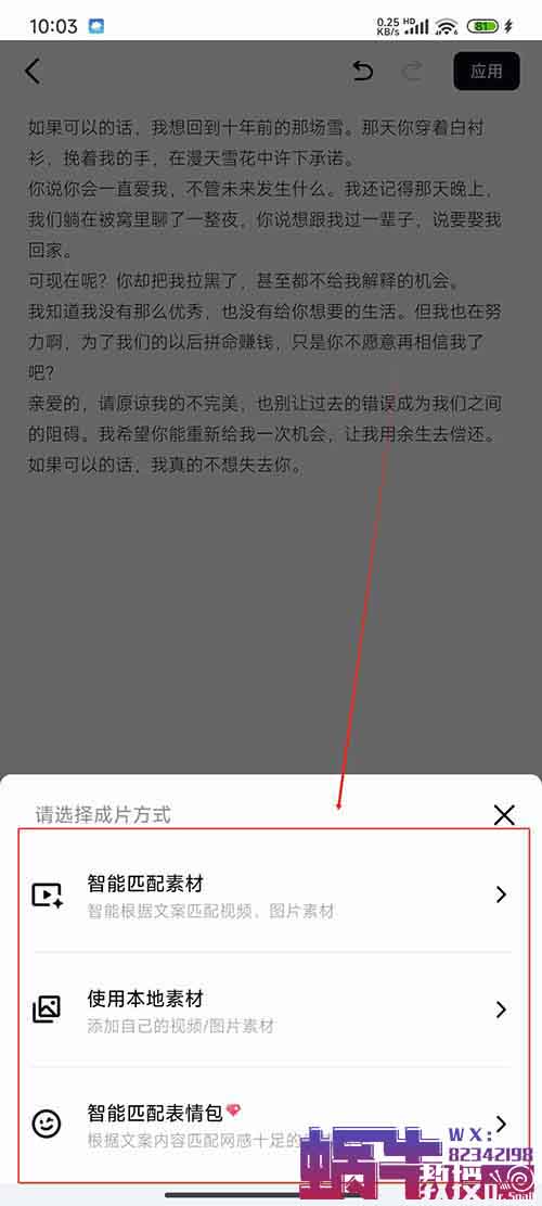 找到这个图文成片,把文案复制粘贴进去,点击应用