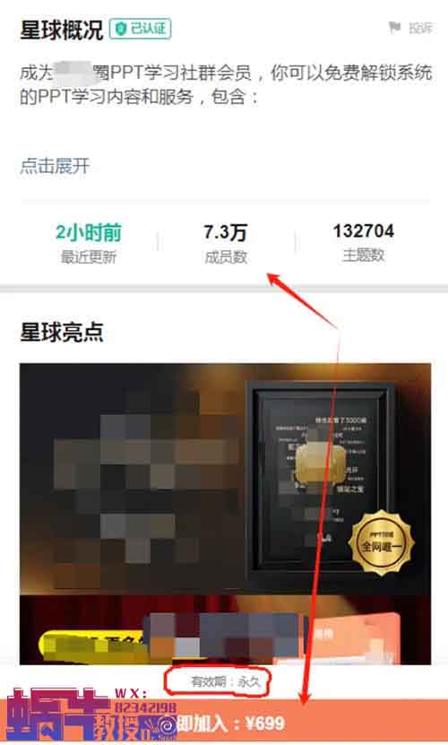 看到没,这是提供关于PPT制作的虚拟资料,客单价699元永久,已经有7.3万人付费加入了。