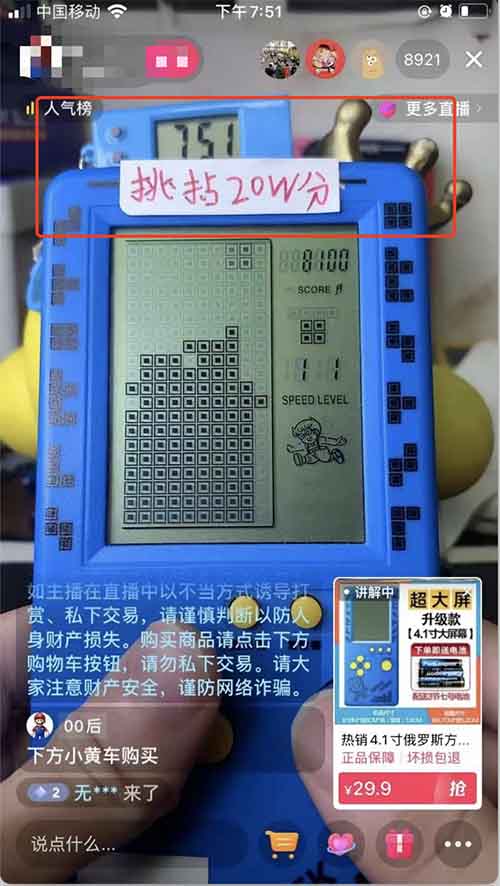 是当时玩得比较多的游戏,当年还有一个MP3,基本人手一个,案例比较简单,买一个游戏机,直播打游戏机,直播挑战,没玩过会关注,怀旧的也会看看,直播间人气比较好,好的时候上万场观。