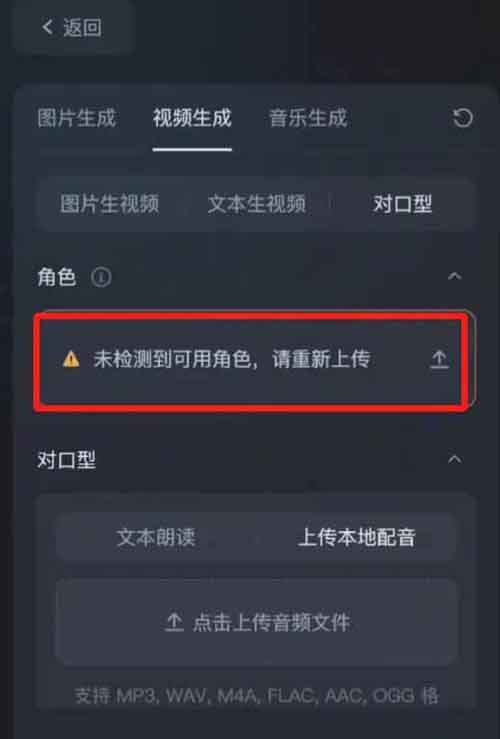 这个不出意外的话,它会提示你未检测到可用角色,请重新上传。