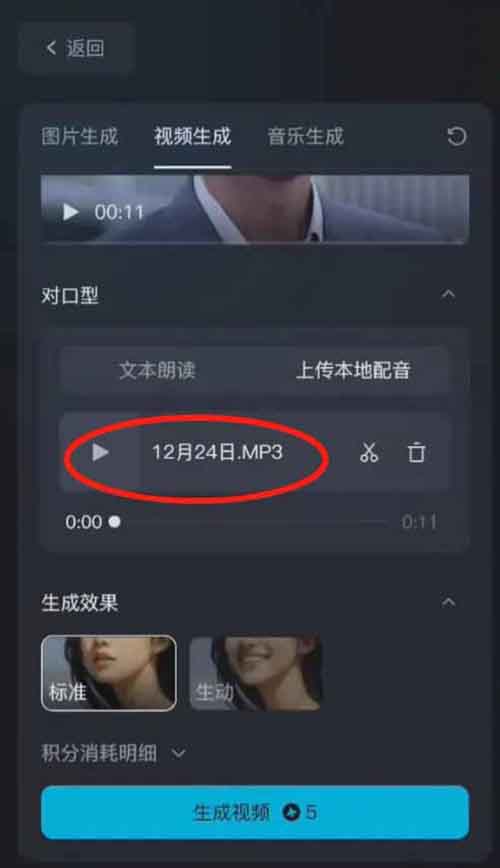 视频上传好了之后,下边紧接着有一个音频上传的地方,就是我们要对口型的音频,把这个音频再上传一下,然后点生成。