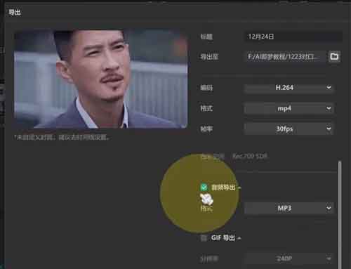 接下来导出这个视频的时候,一定要注意,我们要同步导出视频和音频两个文件。