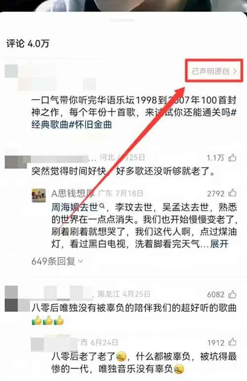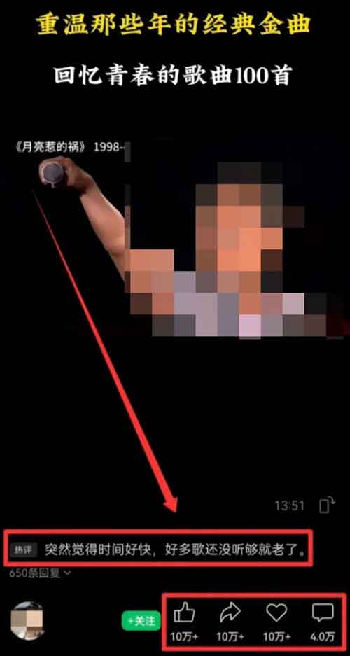 看了一下这个博主,还有着其它3条点赞10w+的作品,可见怀旧歌曲在视频号上多受欢迎啊。