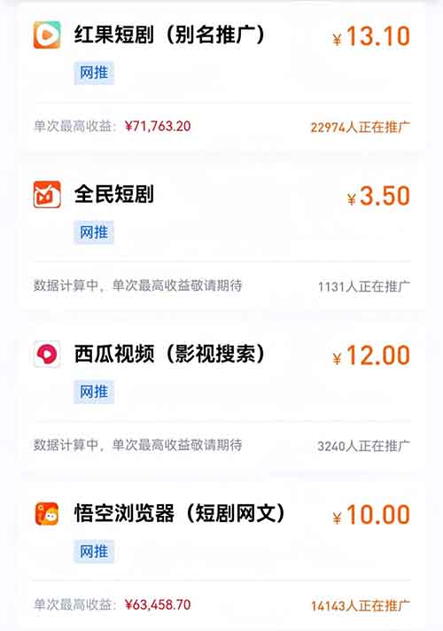 现在做短剧推广,不是去推广短剧,而是推广免费看短剧的平台,赚拉新的钱,每拉一个新用户就有9-12元的佣金。