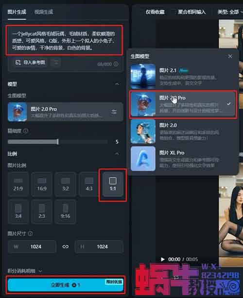 然后输入我给大家准备好的提示词,然后选择图片的模型,这里用到的是2.0升级版。