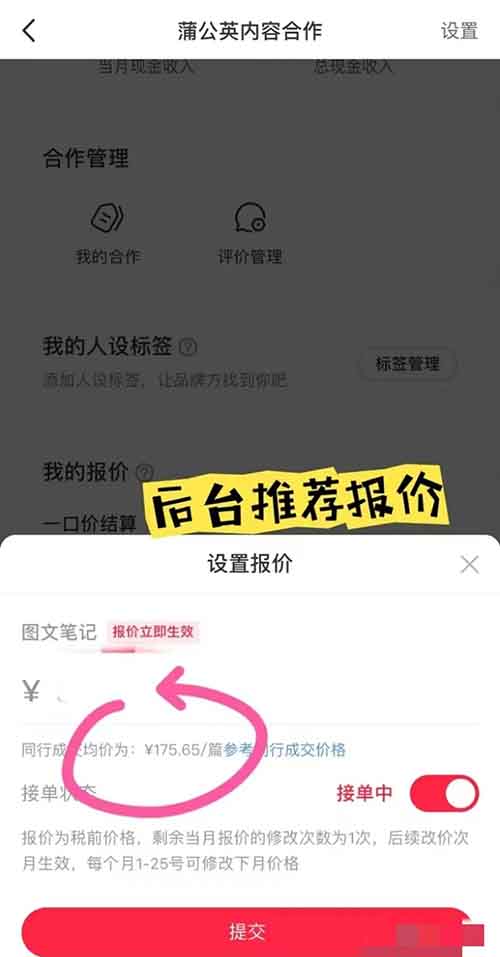变现方式,我前面也说过了,就是通过官方的蒲公英后台,去接官方给你提供的合作商单变现。原文首发蜗牛知享资源站www.woniuboke.cn