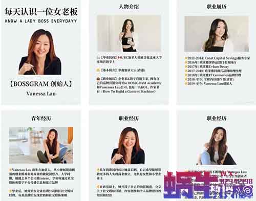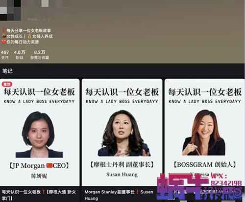 先给大家看一类知识账号,这种账号发布的内容全部都是人物生平简介类的,每一篇笔记都介绍一位女老板起家过程。