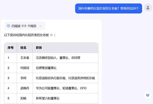 打开AI工具,让AI帮你列出20个比较厉害的女老板。