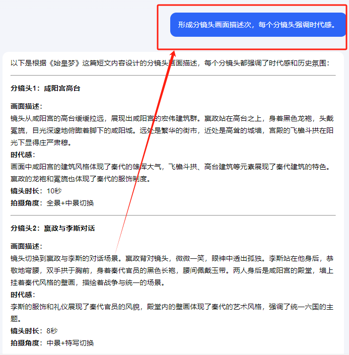 形成分镜头画面描述次,每个分镜头强调时代感。
