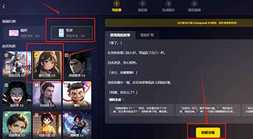 进来后选择deepseek模型,然后输入小说文案,选择好出图风格以及比例