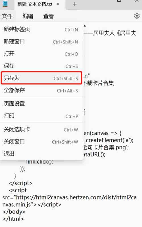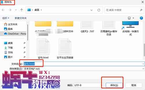 黏贴完成后另存为“.html”格式。