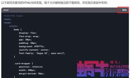 3、每张卡片的外面要有一个下载按钮,点下载按钮可以将整个卡片以png图片的形式下载下来。